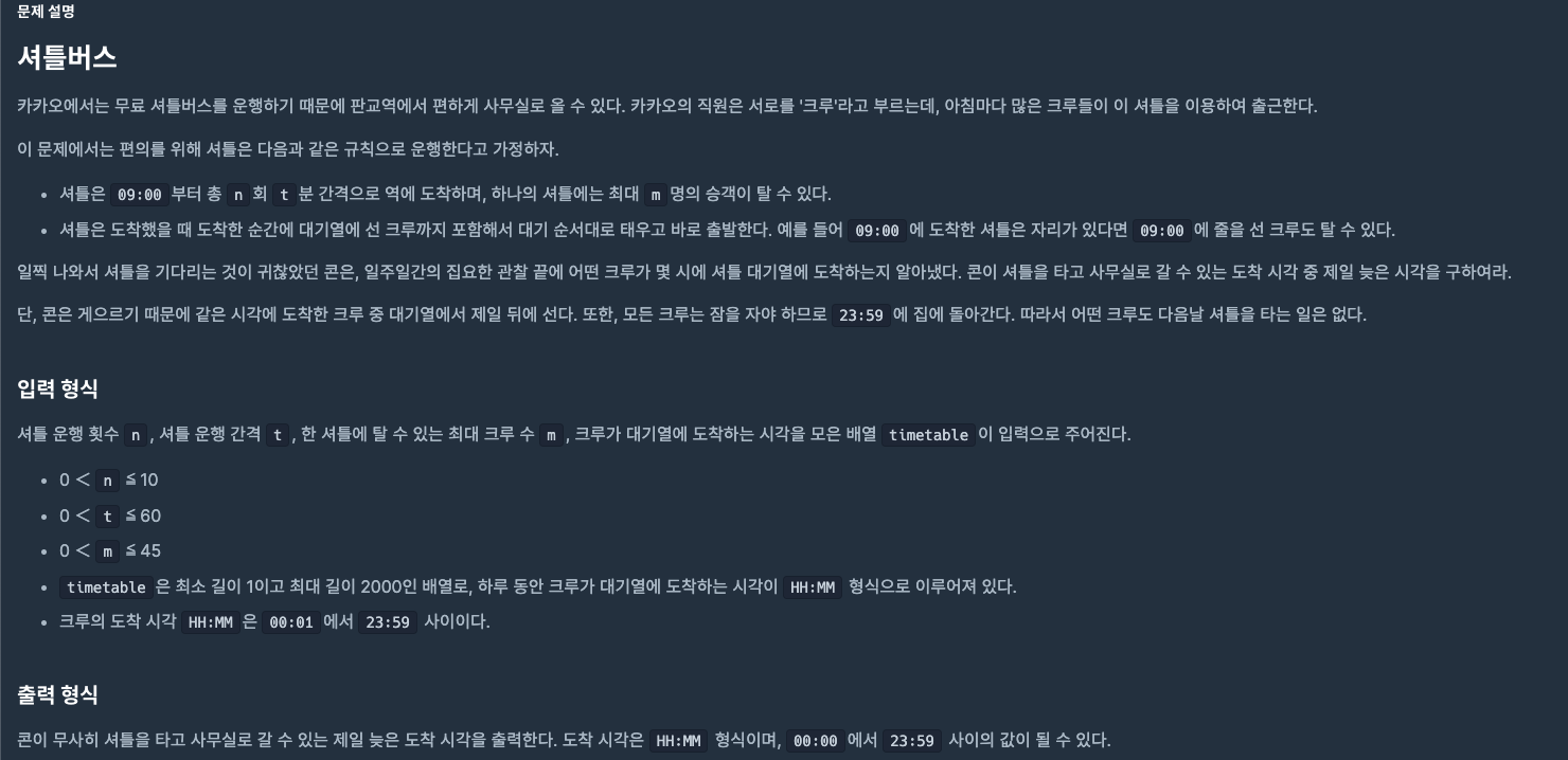 [프로그래머스] [1차]셔틀버스(java) 본문